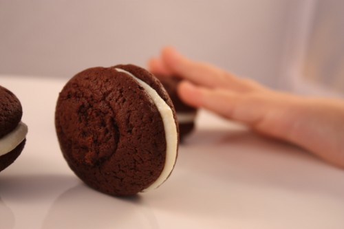 Oggi parliamo dei whoopies, quei biscottini americani al cioccolato accoppiati a 2 a 2…te li ricordi?