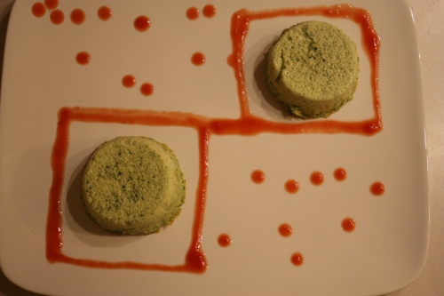 Si sformano sui piatti e si decorano a piacere con un salsa ottenuta dal succo di pomodoro, olio e concentrato di pomodoro (per dare più colore) emulsionati insieme.