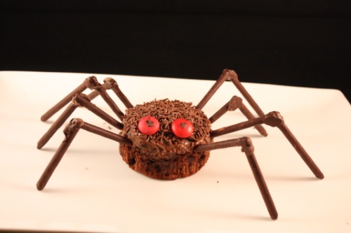 Infine mettiamo le 8 zampe, avendo cura di forare prima i muffin con uno stecco da spiedino per evitare di spezzare le preziose zampette (fatene 2 o 3 in più comunque…)