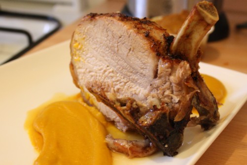Accompagnate se volete con un purè di zucca, preparato facendo bollire la zucca e la patata e frullandole con il frullatore ad immersione dopo averle lasciate a scolare nel colino per qualche minuto. Aggiungete un po’ di senape per dargli un po’ di forza e acidità ed eventualmente un po’ di latte se vi sembra troppo asciutto (per non ce ne è stato bisogno).